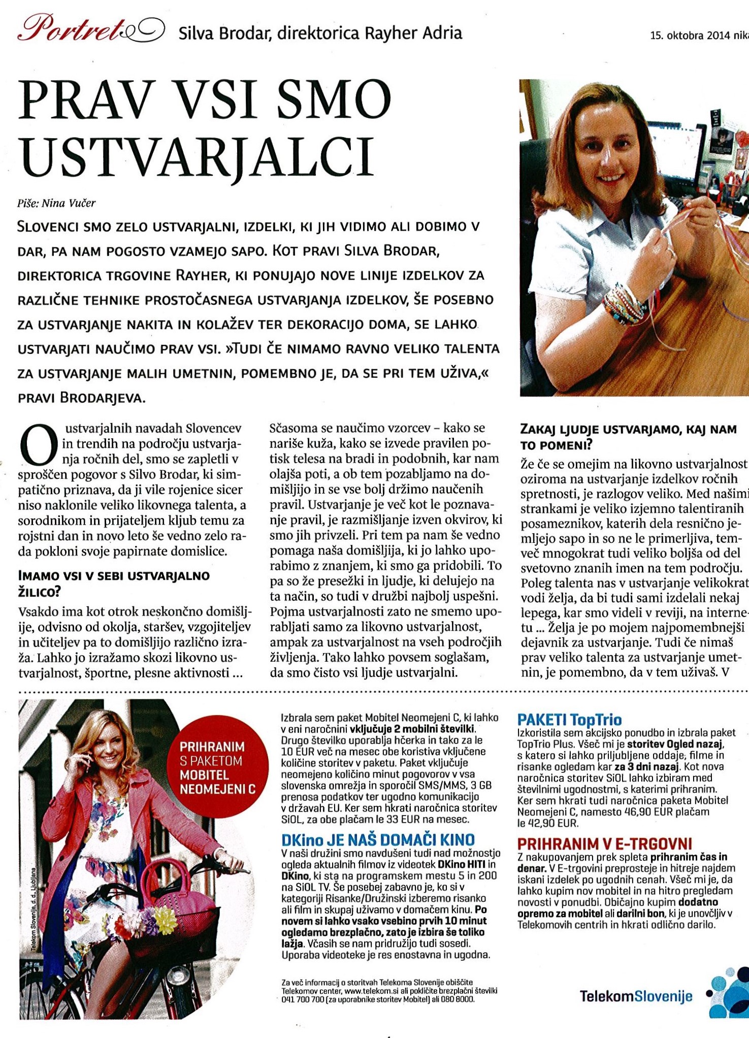 Nika - Intervju z direktorico podjetja Rayher Adria gospo Silvo Brodar 15. oktober 2014 | Pišejo o nas