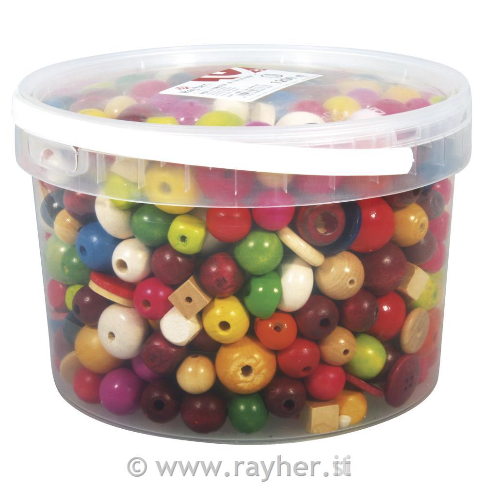 Lesene perle, različne barve, 16-25 mm o, v posodi 1200 g
