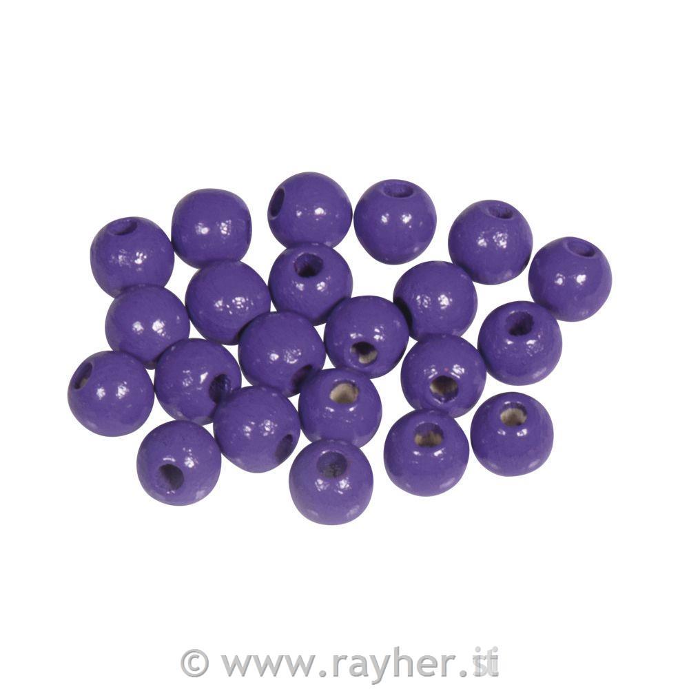 Perle legno FSC 100%, lucidate, 6mm o, lilla scuro, busta 115pz