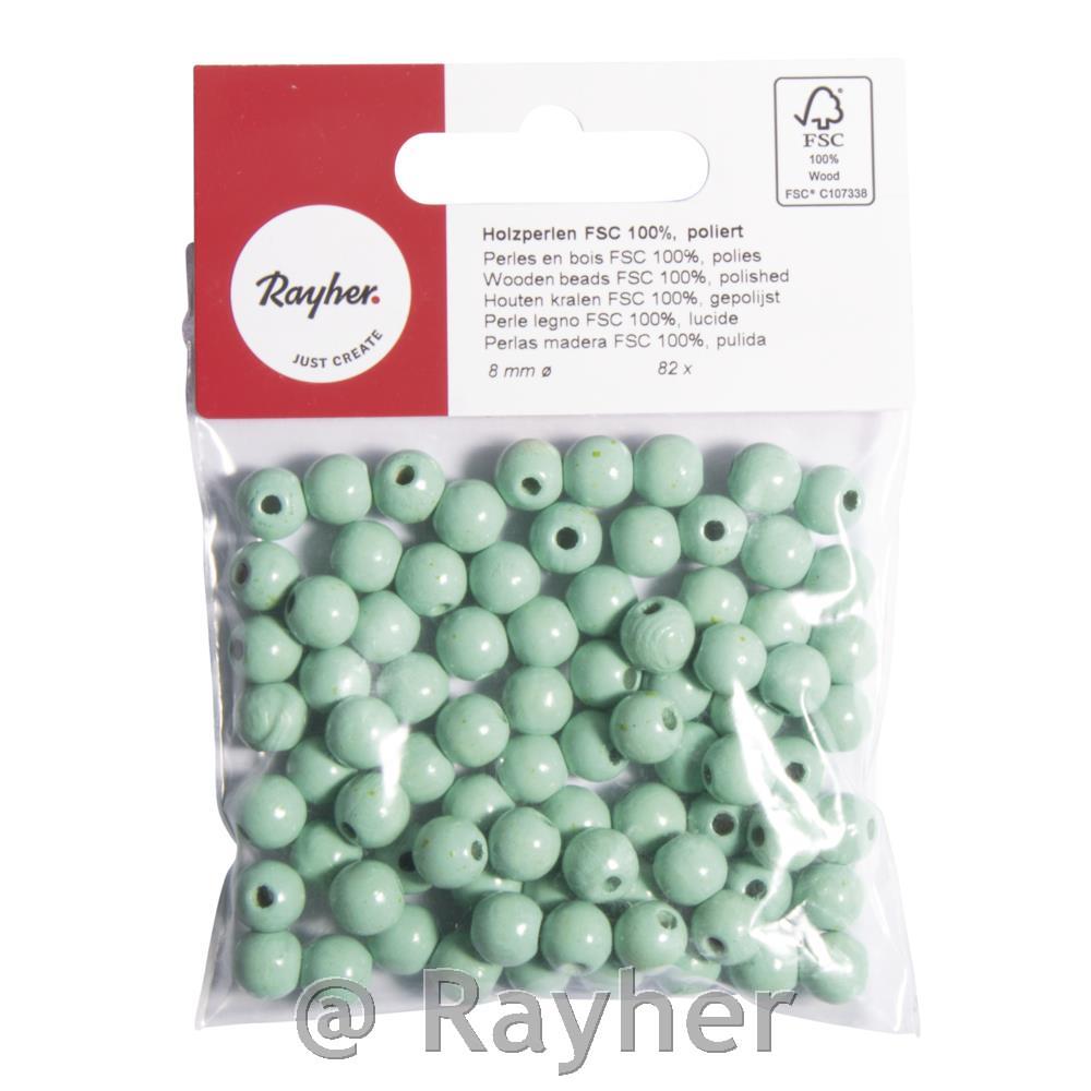 • Perle legno FSC 100%, lucidate, 8mm o, busta 82pzverde chiaro