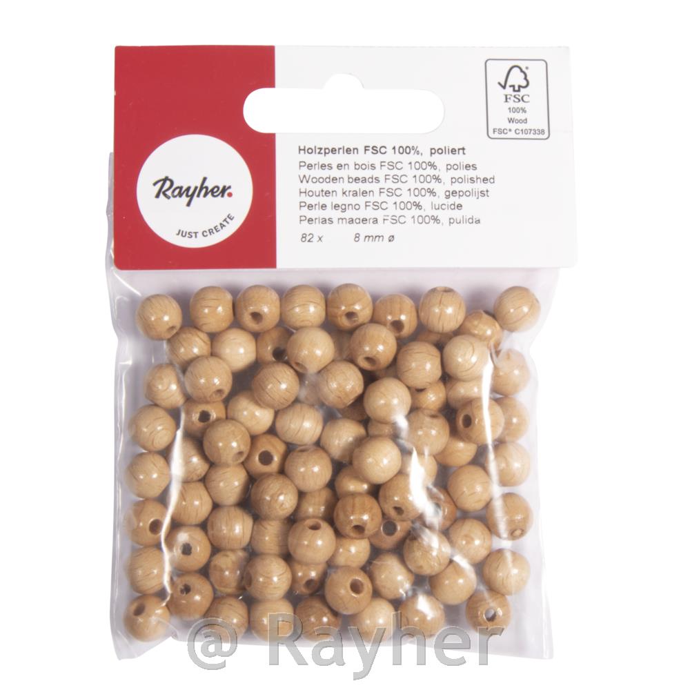 Lesene perle, lakirane, enostavne za nizanje na vrvice, premer luknje približno 2,2 mm. Narejene so iz bukovega lesa, v Nemčiji, imajo certifikat FSC ( odgovorno gospodarjenja z gozdovi). Lesene perle so odporne proti slini in znoju.
