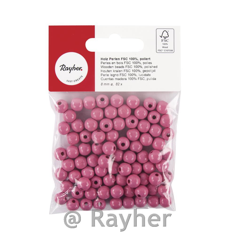 Lesene perle, lakirane, enostavne za nizanje na vrvice, premer luknje približno 2,2 mm. Narejene so iz bukovega lesa, v Nemčiji, imajo certifikat FSC ( odgovorno gospodarjenja z gozdovi). Lesene perle so odporne proti slini in znoju.