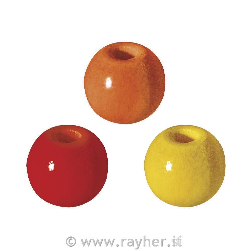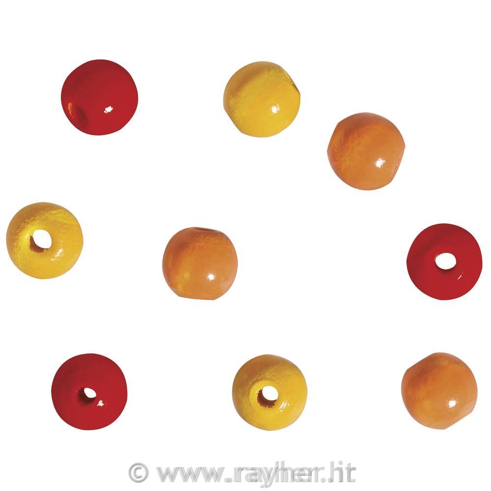 Misto perle legno FSC 100%, 8mm o, arancione, rosso, giallo, lucido, bus.blis. 82pz