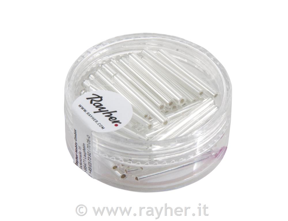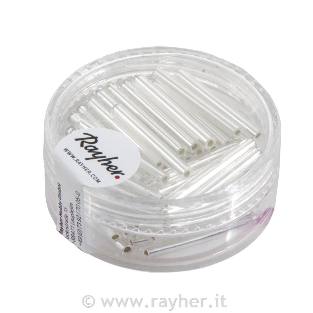 Pive di vetro, argento, 2cm,c.foro argentato, scatola 12 g
