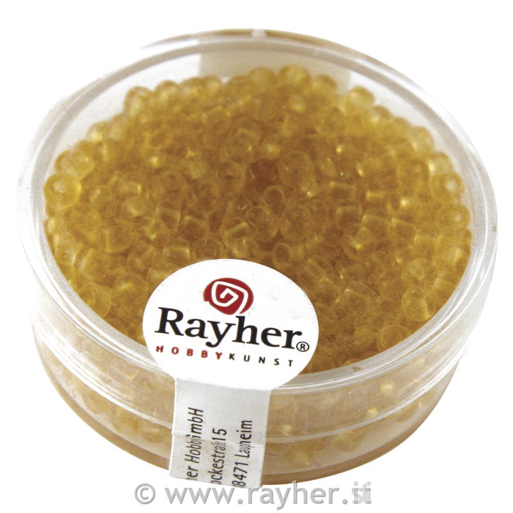 Perline vetro, 2,6 mm o, trasparenti, marrone medio, scatolina 17g