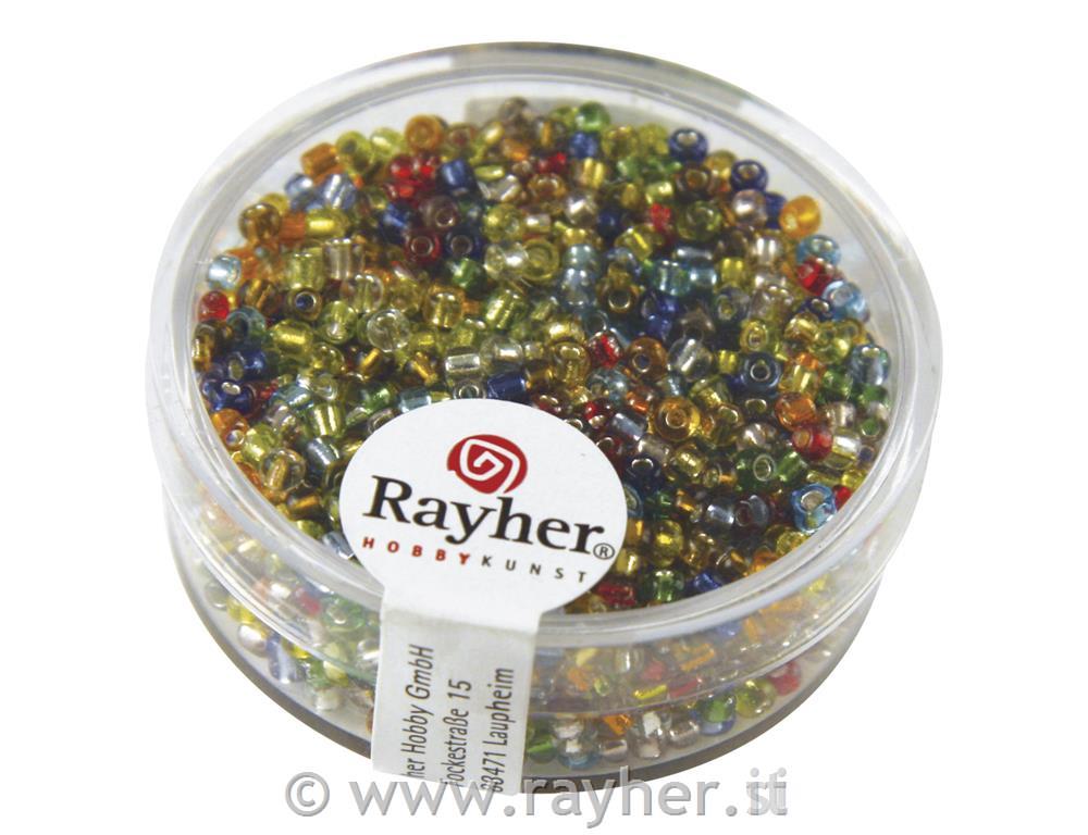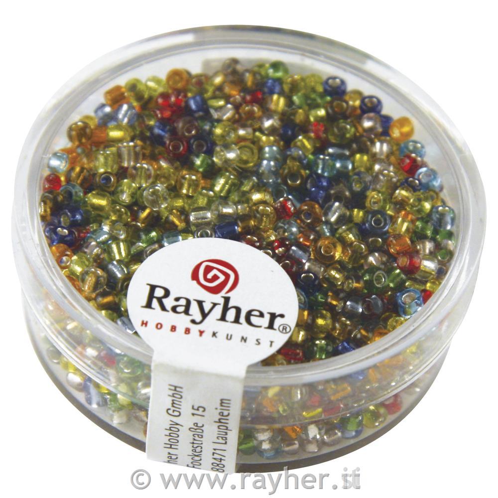 Perline vetro, 2 mm o, foro argentato, assortiti, non lavabile, scatolina 17g