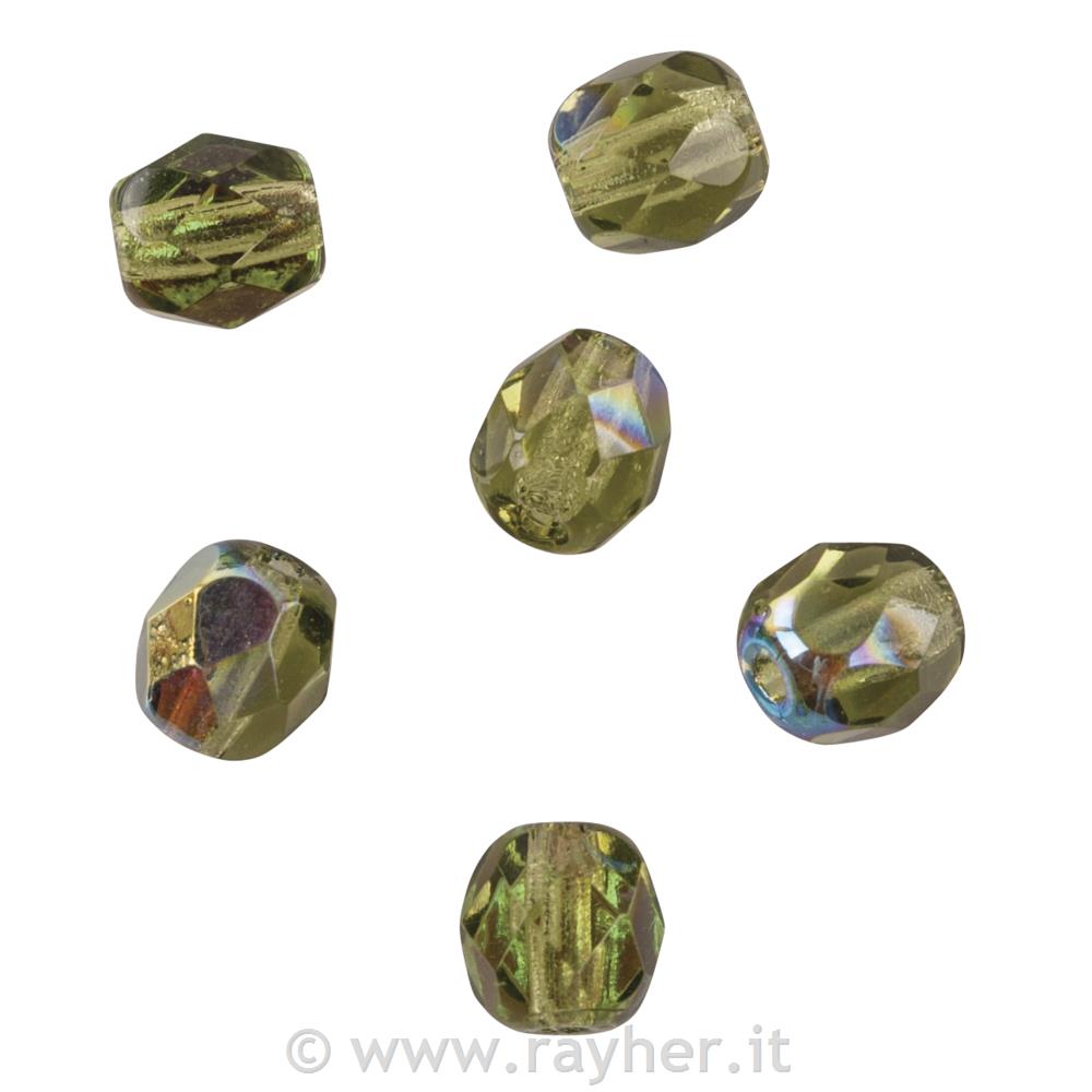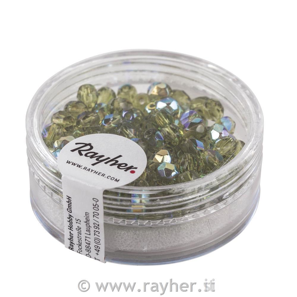 • Perle brušeno steklo, 4mm o, olivne, 100 kom.