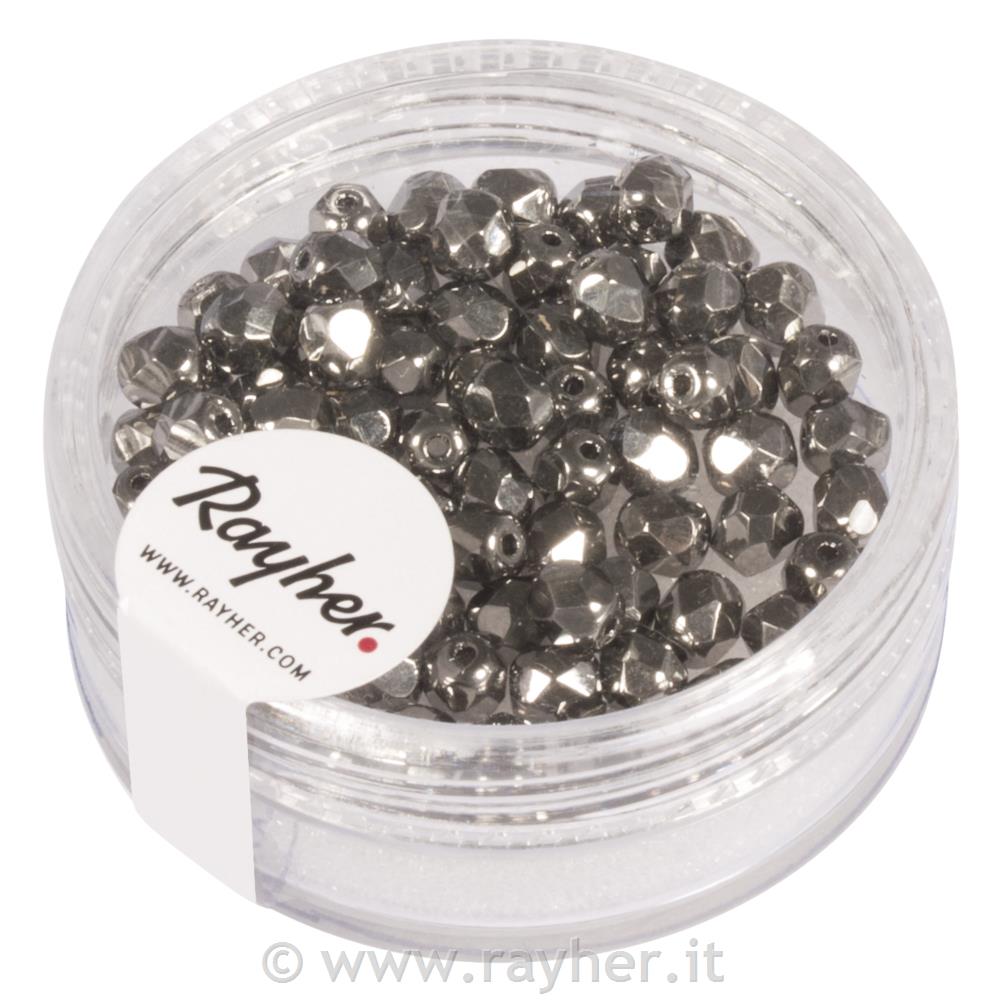 • Perla sfaccettata vetro, 4mm o, antracite opaco, scatolina 100pz