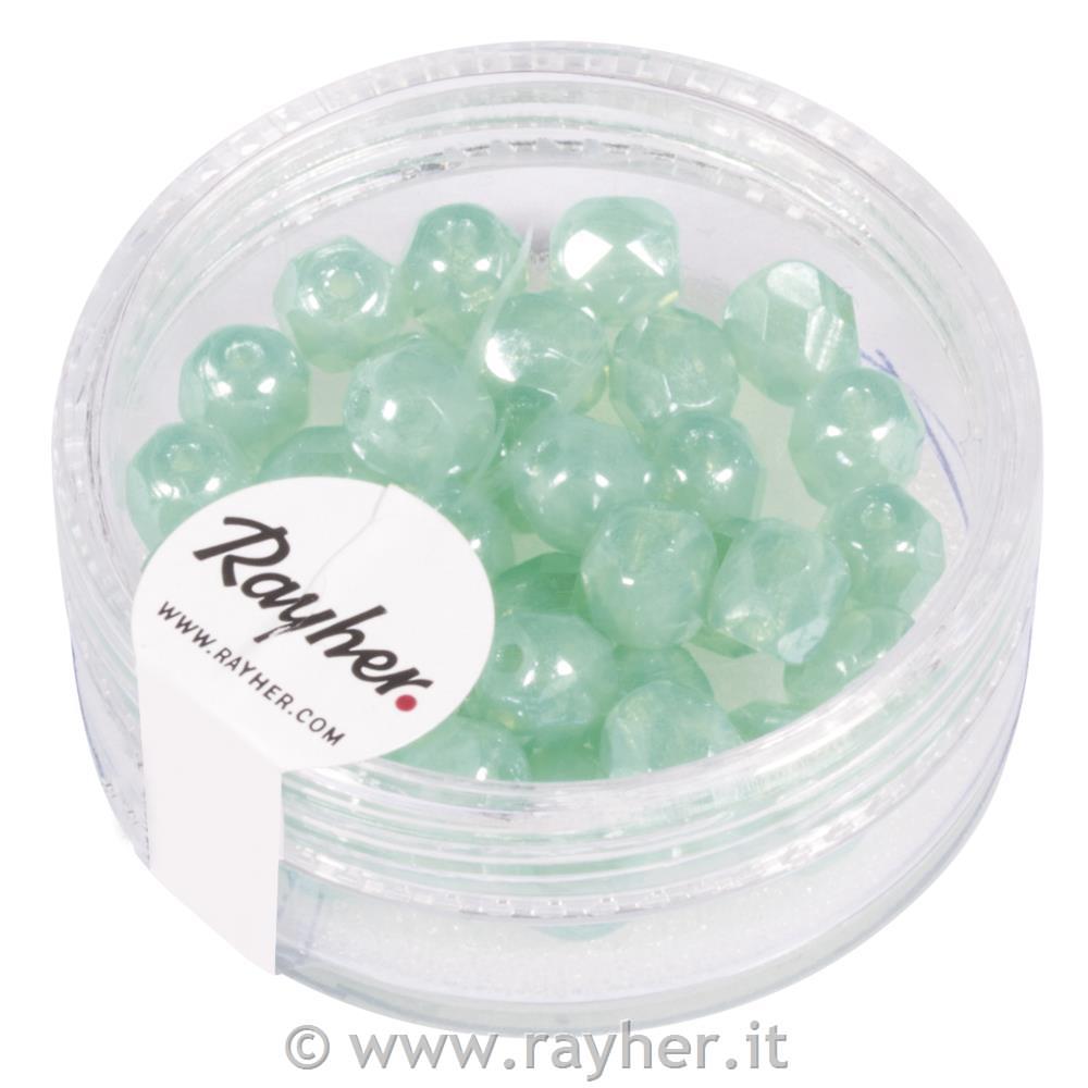 Perline trasparenti, 6 mm o, , verde menta opaco, scatolina 50 pz