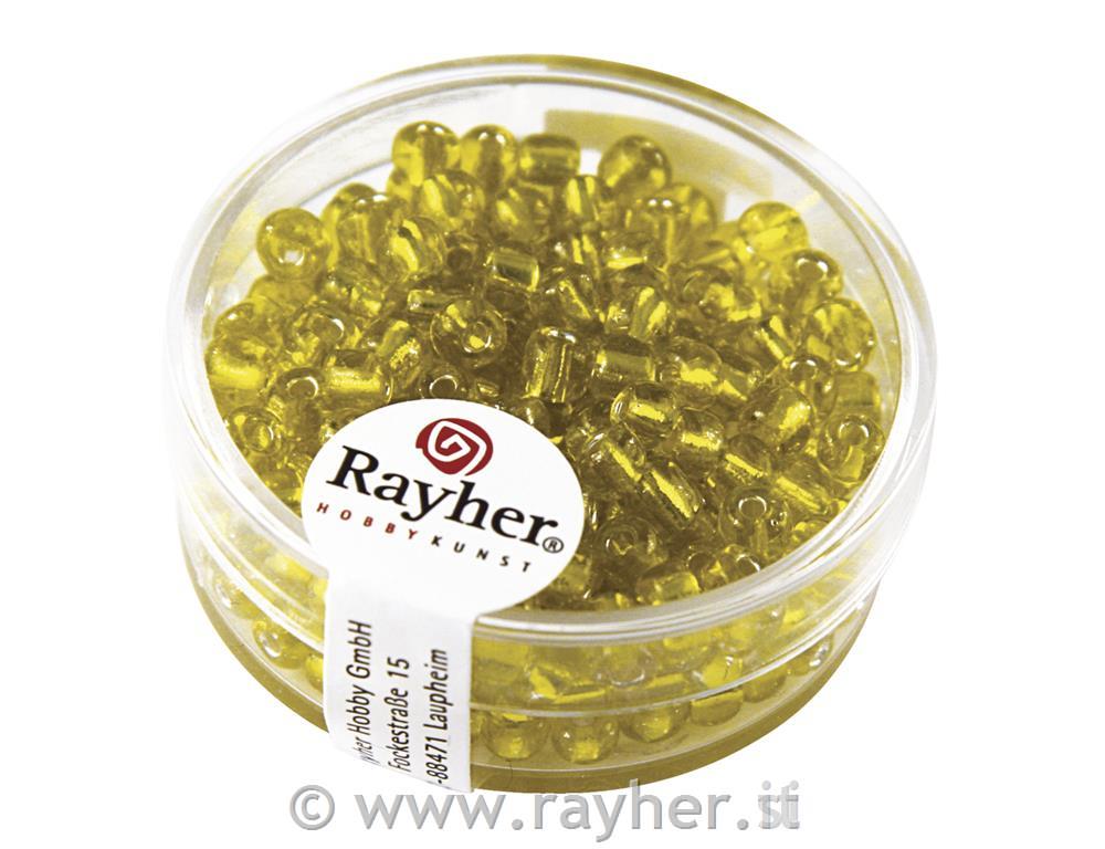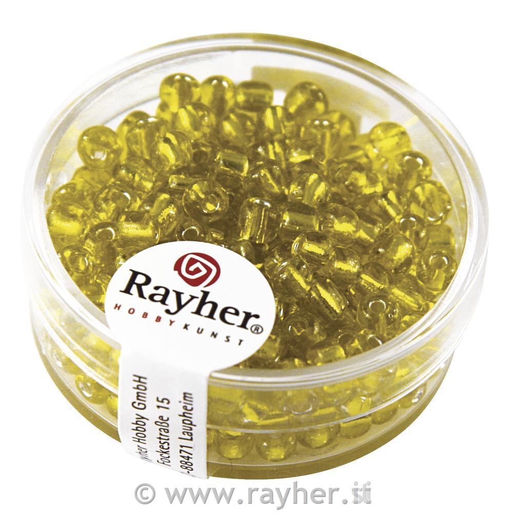 Perline, 4 mm o, con foro argentato, giallo, Scatola 17 g