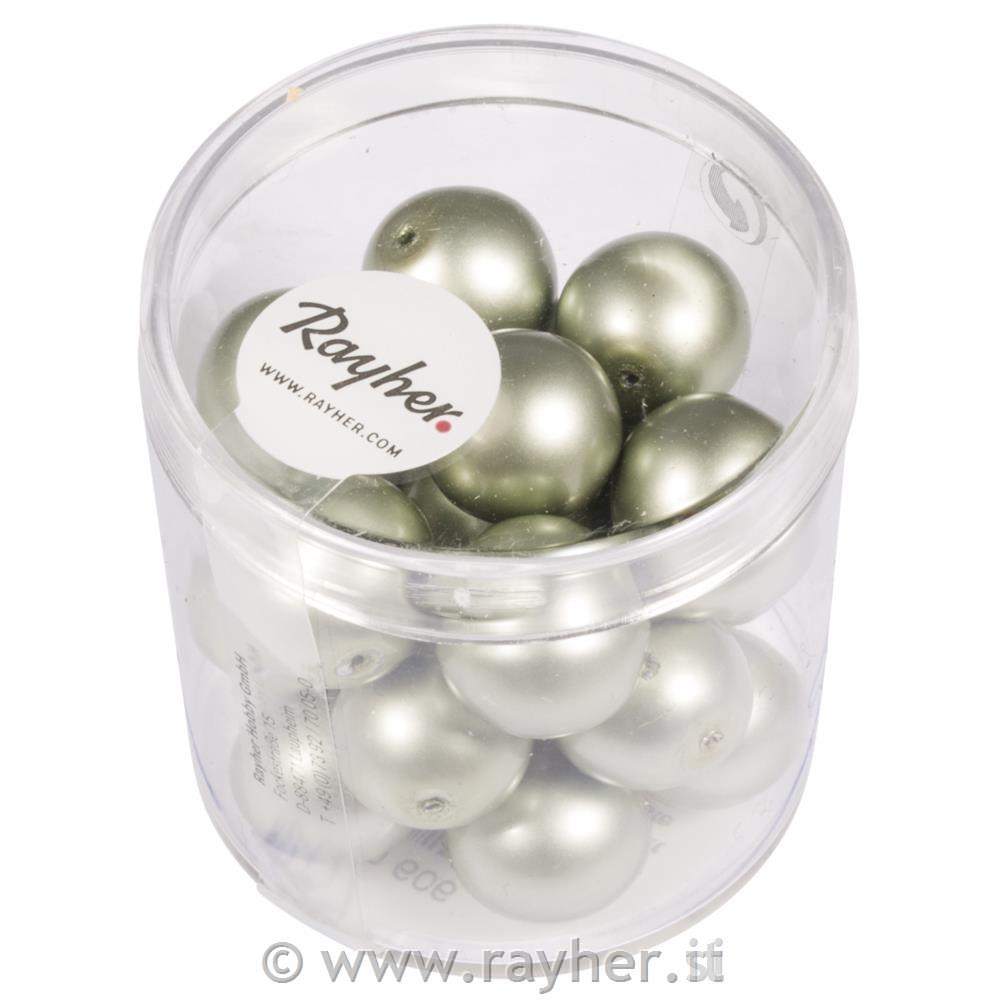 Renaissance glass wax beads, matt,12mm o, silver, box 21pcs
