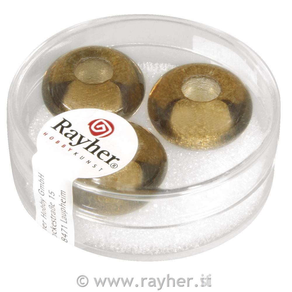 Perlina v foro grande"Magic Flair",16mmoforo 6mm o, trasparente, scat. 3pzcaramello