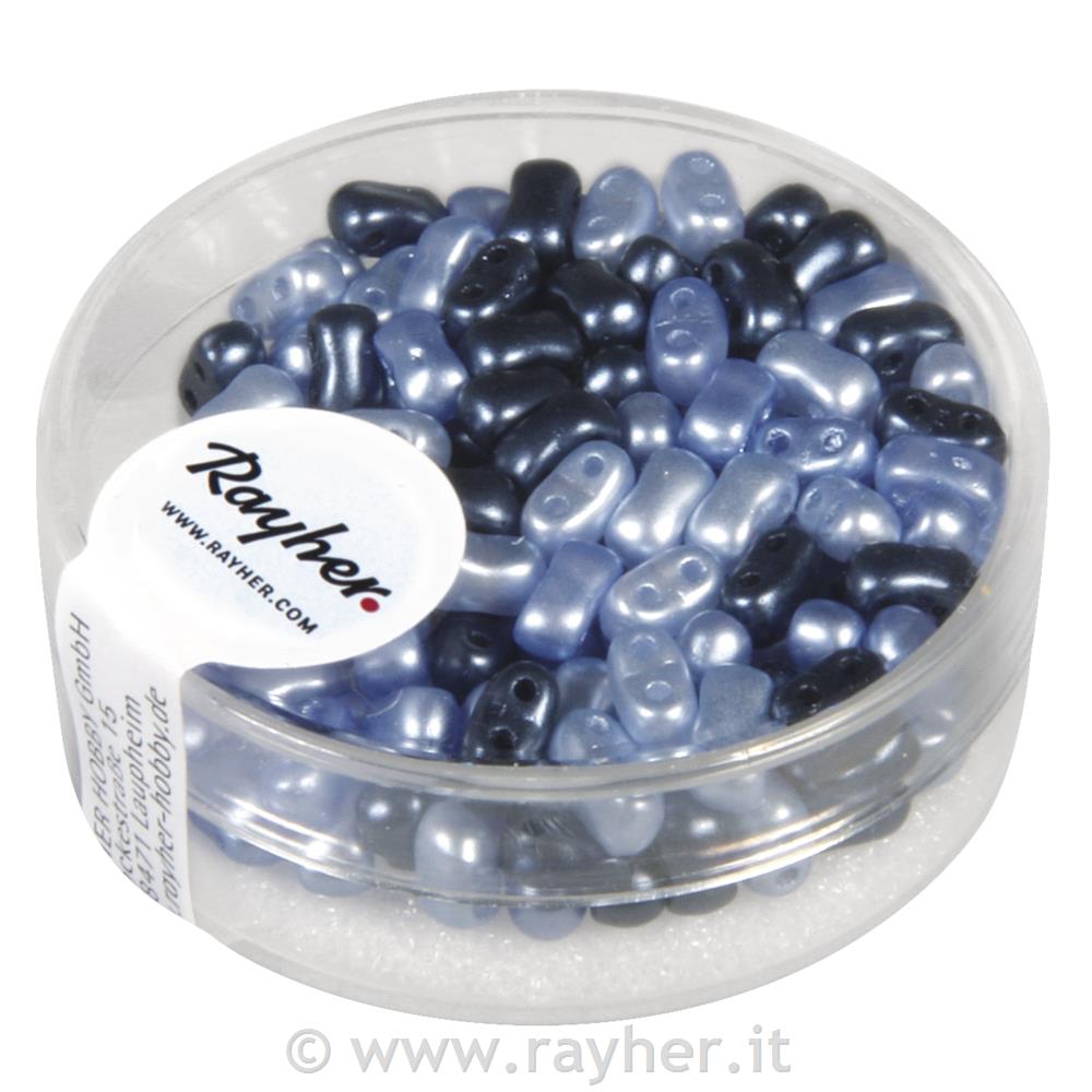 Misto rocailles cerate-foro doppio, blu, 3x5mm, scatolina 12g