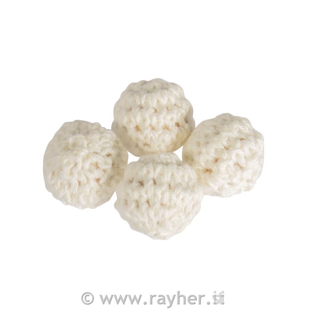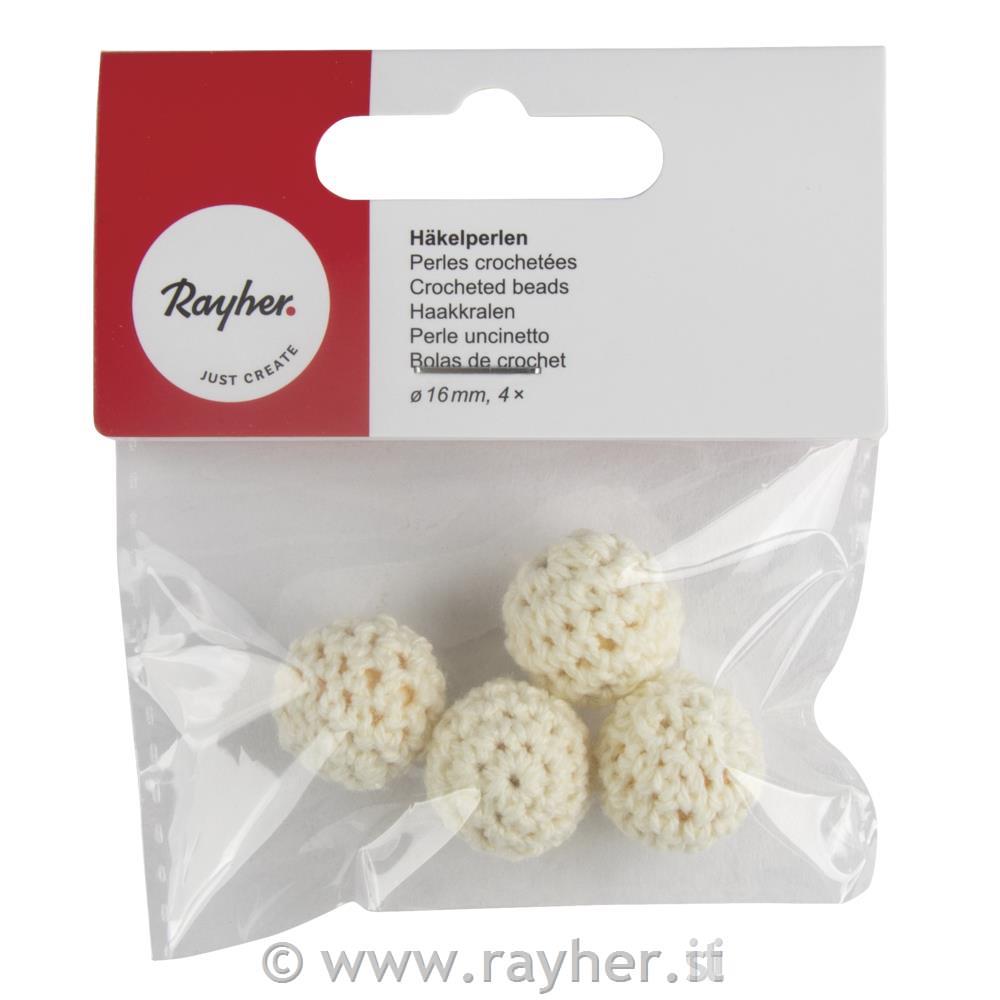 Crocheted beads, 16mm owhitetab-bag 4pcs
