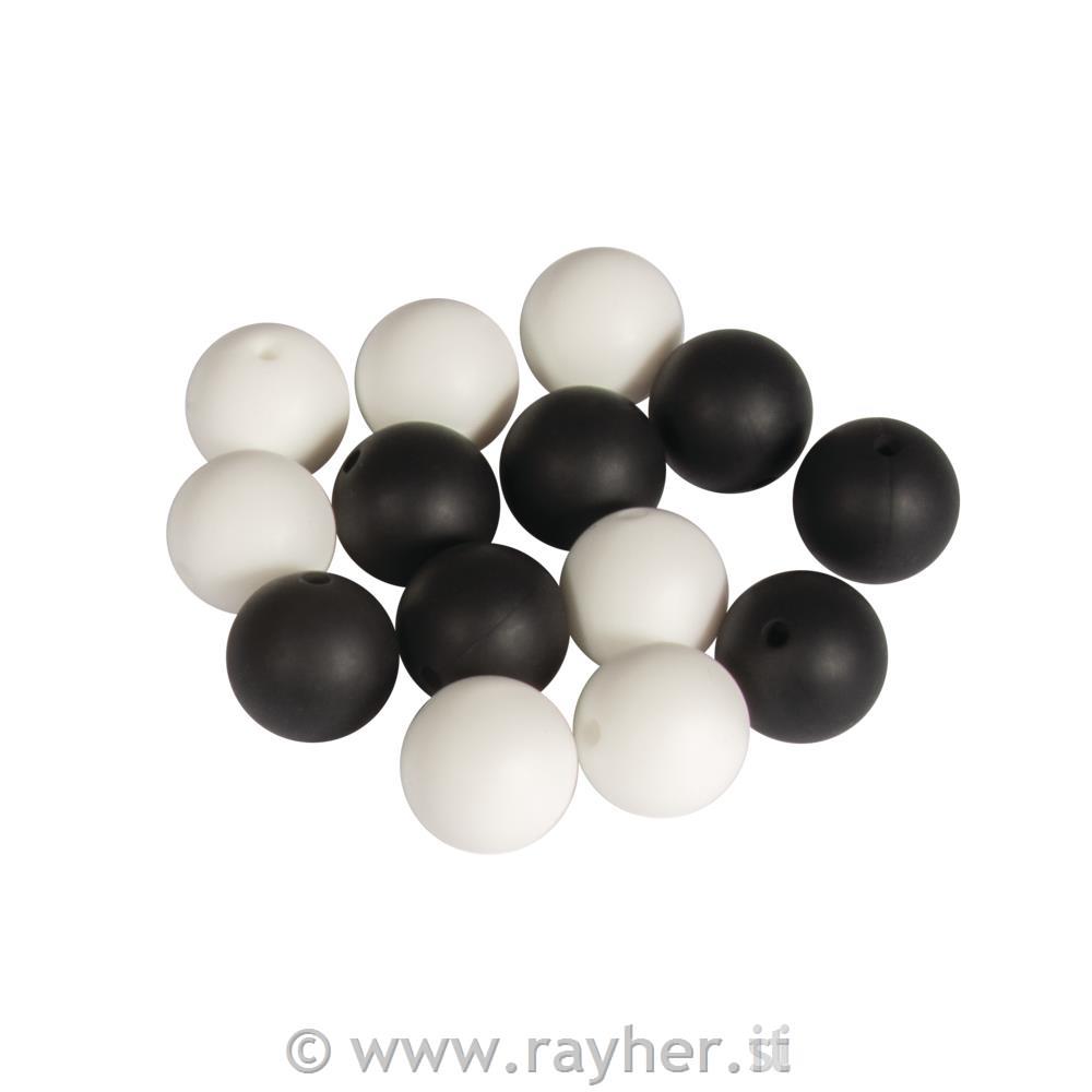 Silikonske perle, 15mm, črno-bele, 14 kos