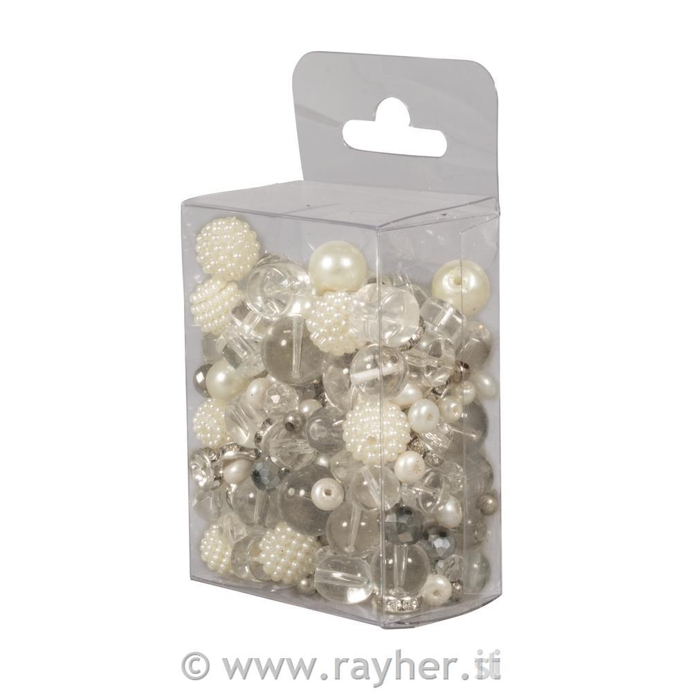 Perle steklene "Pearl effect", bele, 100g