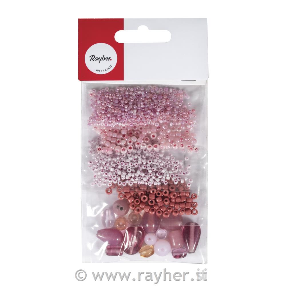 Perle di vetro "Mix", rosa, 40g