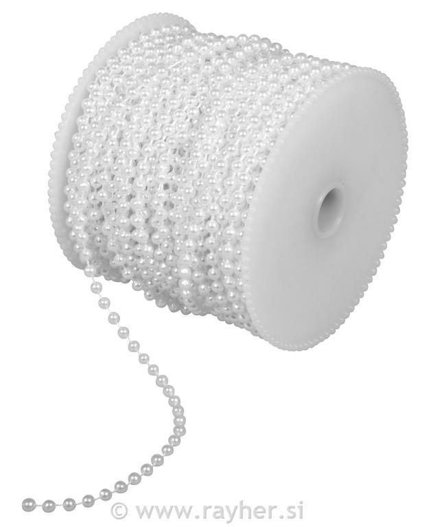Veriga dekorativna iz perl, 3 mm o, bela, na kolutu: 1m