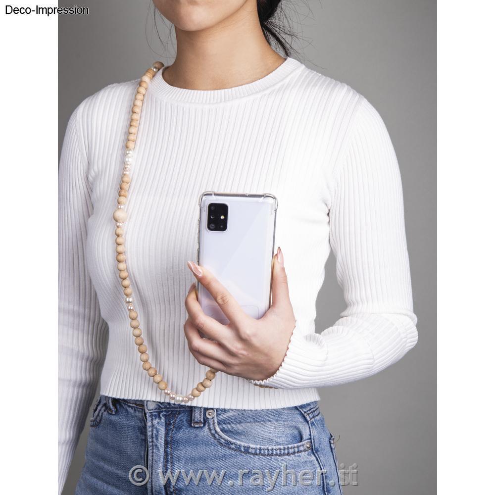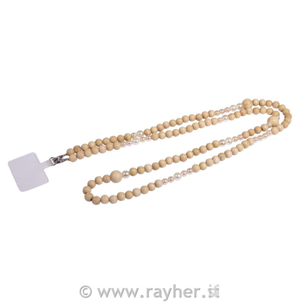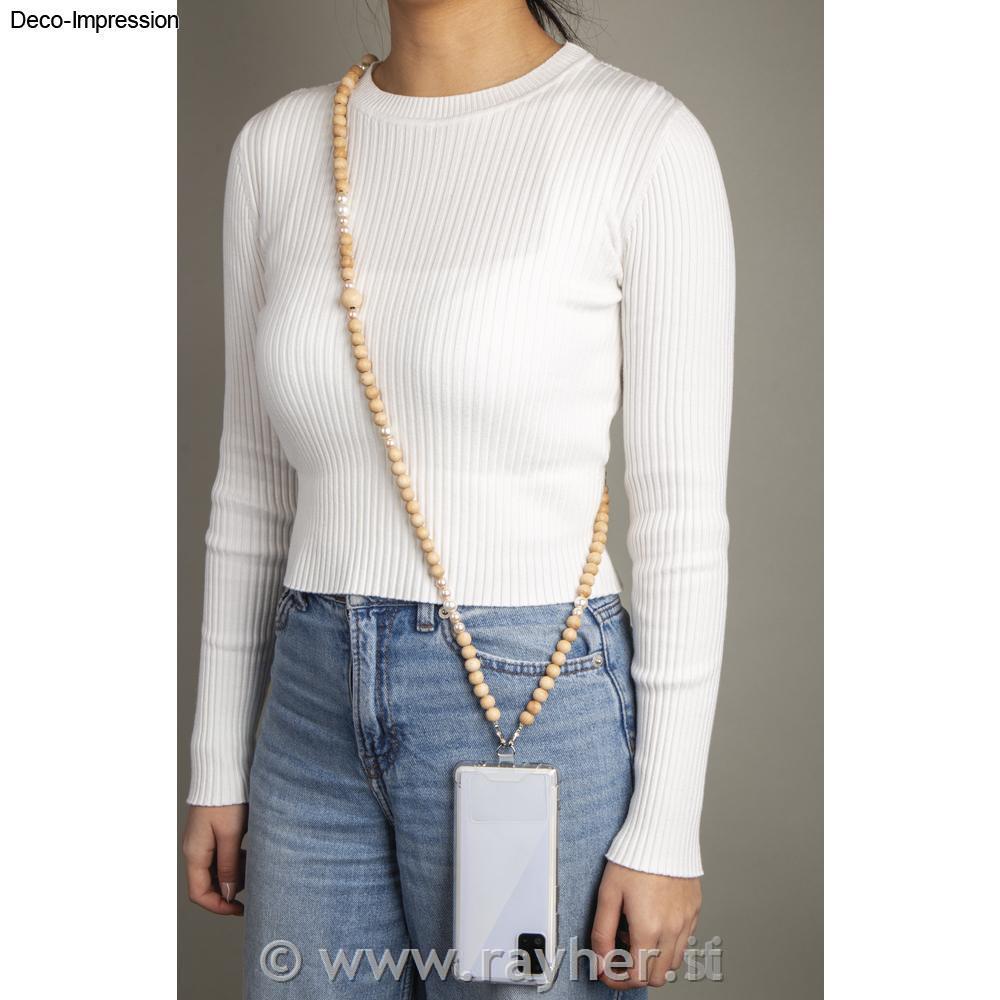 Naša veriga za mobilni telefon iz lesenih in steklenih perlic je idealna rešitev za pritrditev ovitka za mobilni telefon. Preprosto vstavite vstavno kartico v ovitek za telefon – lepo in praktično hkrati!