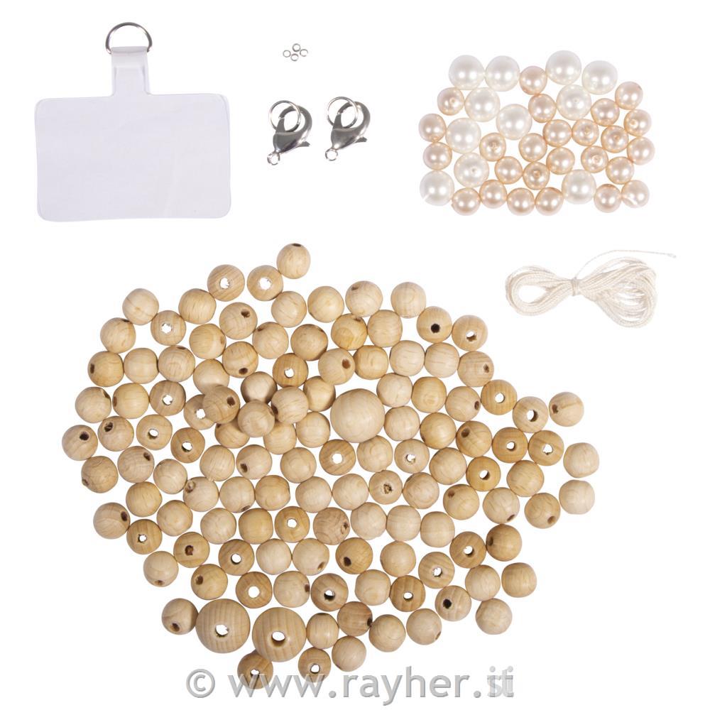 Ustvarite svojo lastno verigo za mobilni telefon, da bo vaš mobilni telefon vedno na dosegu roke! Ta praktična in elegantna veriga za mobilni telefon iz visokokakovostnih lesenih kroglic in elegantnih okrasnih steklenih perlic je zelo enostavna za izdelavo. Vsavna kartica je univerzalna, zelo taneka in trdna, lahko jo enostavno vstavite v ovitek za mobilni telefon. Verigo za mobilni telefon lahko kadarkoli pritrdite in odstranite zahvaljujoč zaponkam.