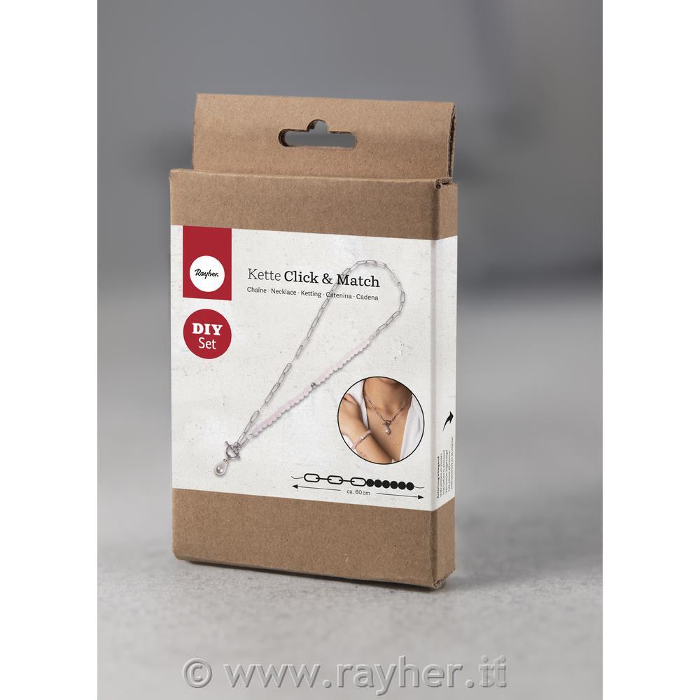 Combina la catena a maglie Paperclip, molto di tendenza, con le sofisticate pietre semipreziose di quarzo rosa e raffinati accessori per gioielli per ottenere un gioiello unico nel suo genere. Questa catena fai da te e chic con un tocco di originalita, perché puo essere indossata come bracciale con perline o come collana senza perline. Il raffinato concetto “Click, Mix & Match” lo rende possibile: grazie alle discrete chiusure a moschettone, le catene dei gioielli possono essere combinate individualmente.