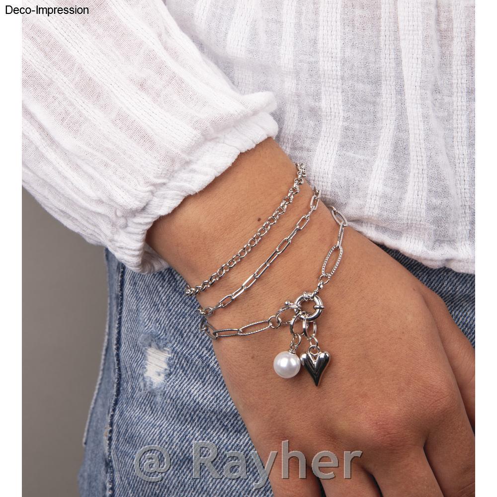 Questo braccialetto fai da te e chic con un tocco di originalita. E composto da tre catene a maglie singole che possono essere combinate e indossate in vari modi. Puoi quindi indossare i bracciali separatamente o insieme come bracciale a maglie a 2 o 3 strati. E se lo desideri, puoi anche trasformarli in una collana. Il raffinato concetto "Click, Mix & Match" lo rende possibile: grazie alle sobrie chiusure a moschettone, le catene possono essere combinate individualmente e, indipendentemente da come indossi i tuoi gioielli, saranno sempre perfetti!