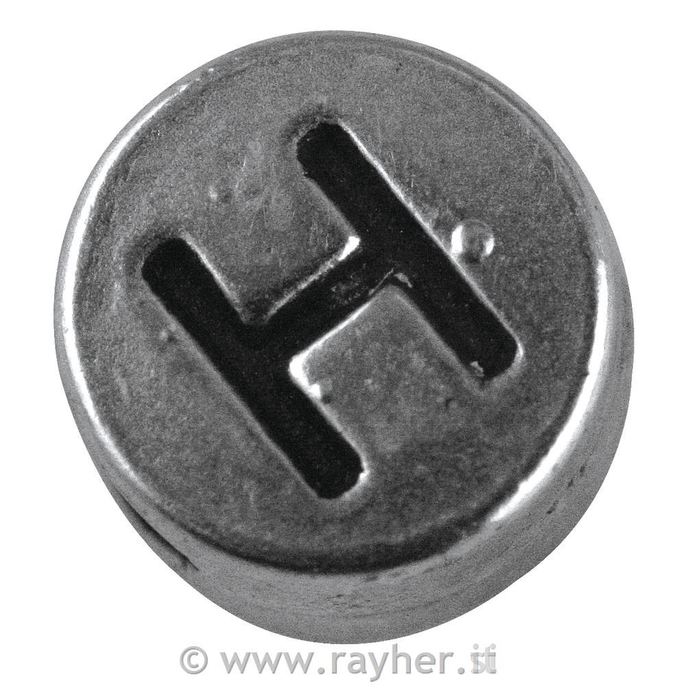Perla metallo "H", 7mm o, argento, foro 2mm o, sfuso