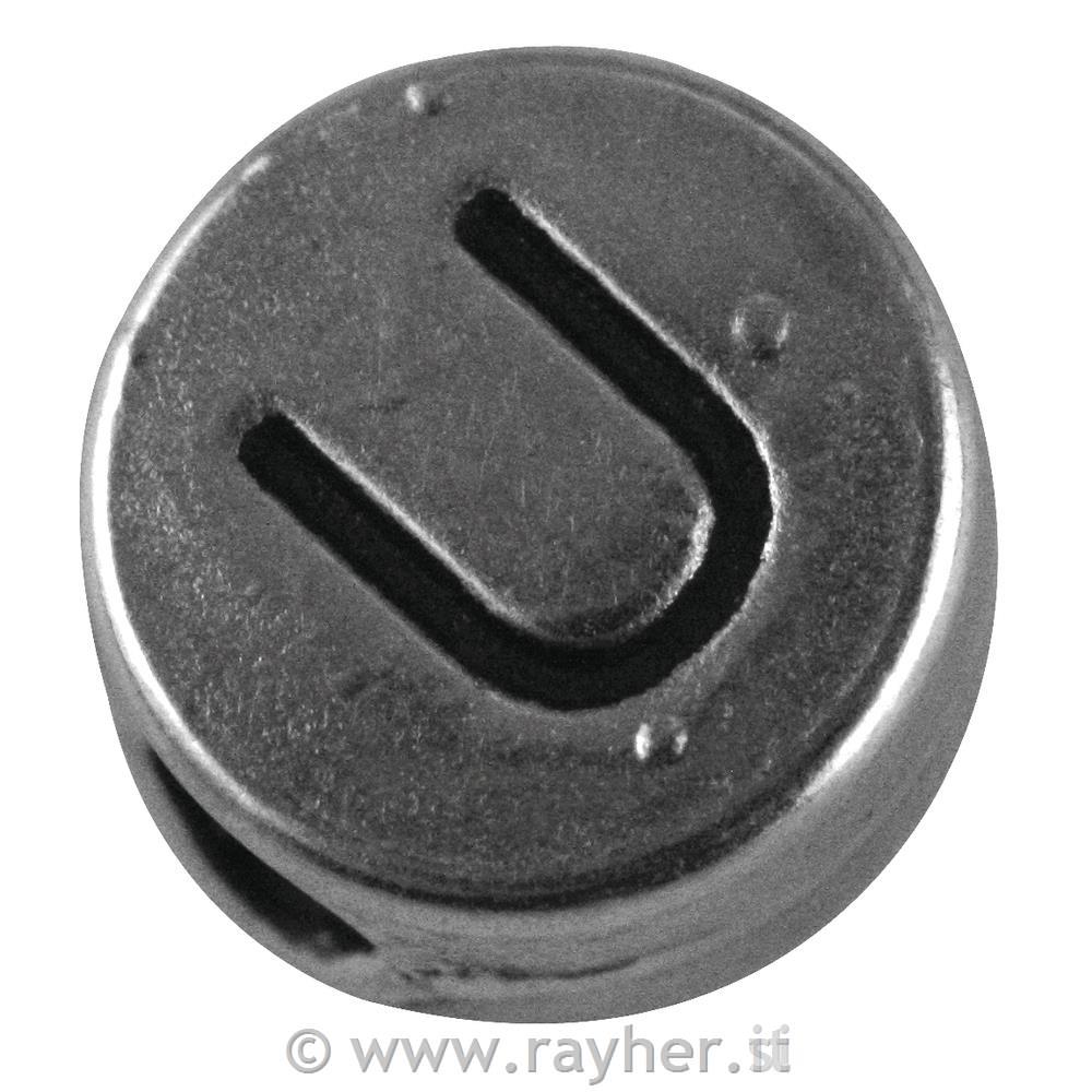 Perla kovinska črka "U", bn, srebrna, o 7 mm, hole 2 mm, 1 kos.