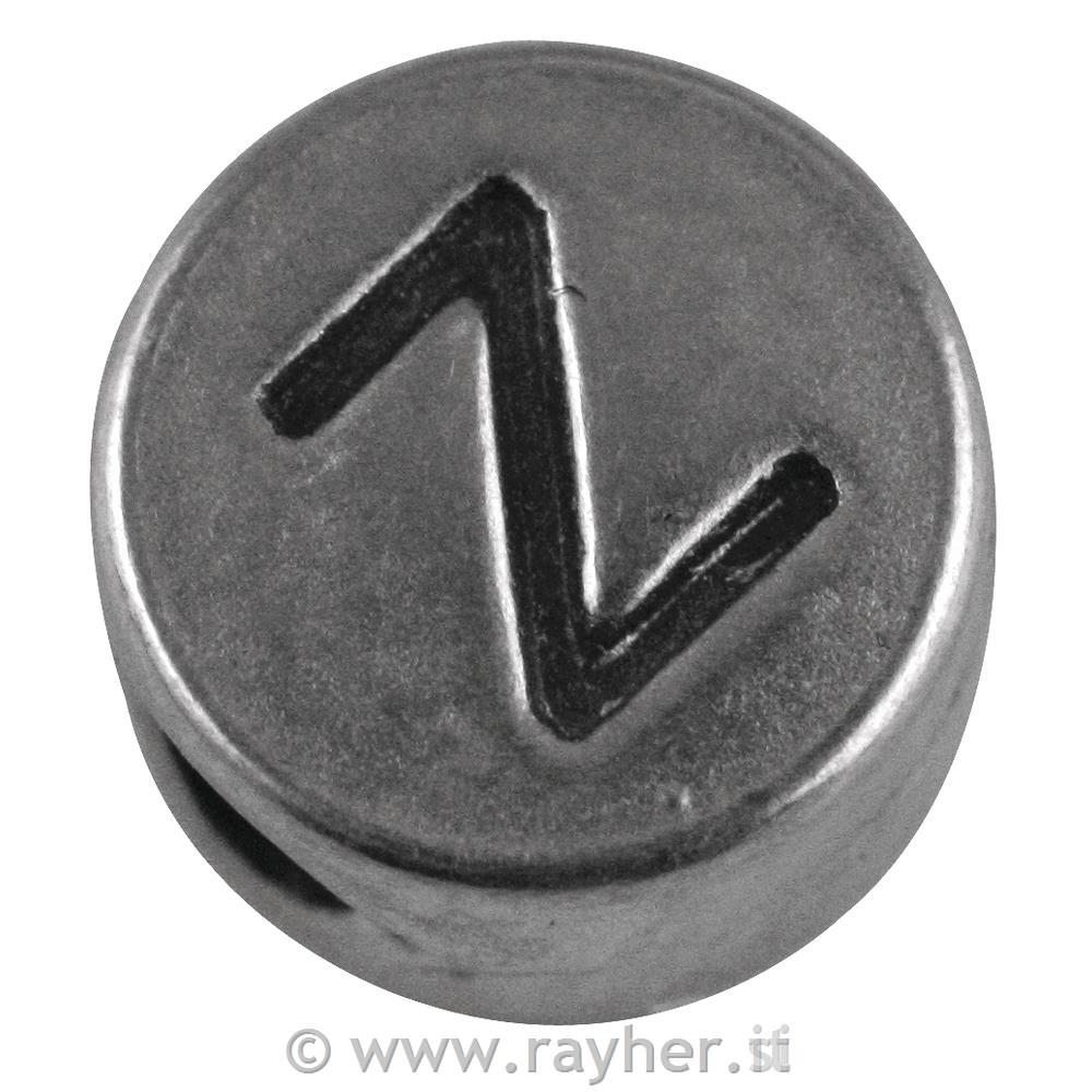 Perle kovinske črke, Y & Z, bn, srebrna, o 7 mm, hole 2 mm, 1 kos.