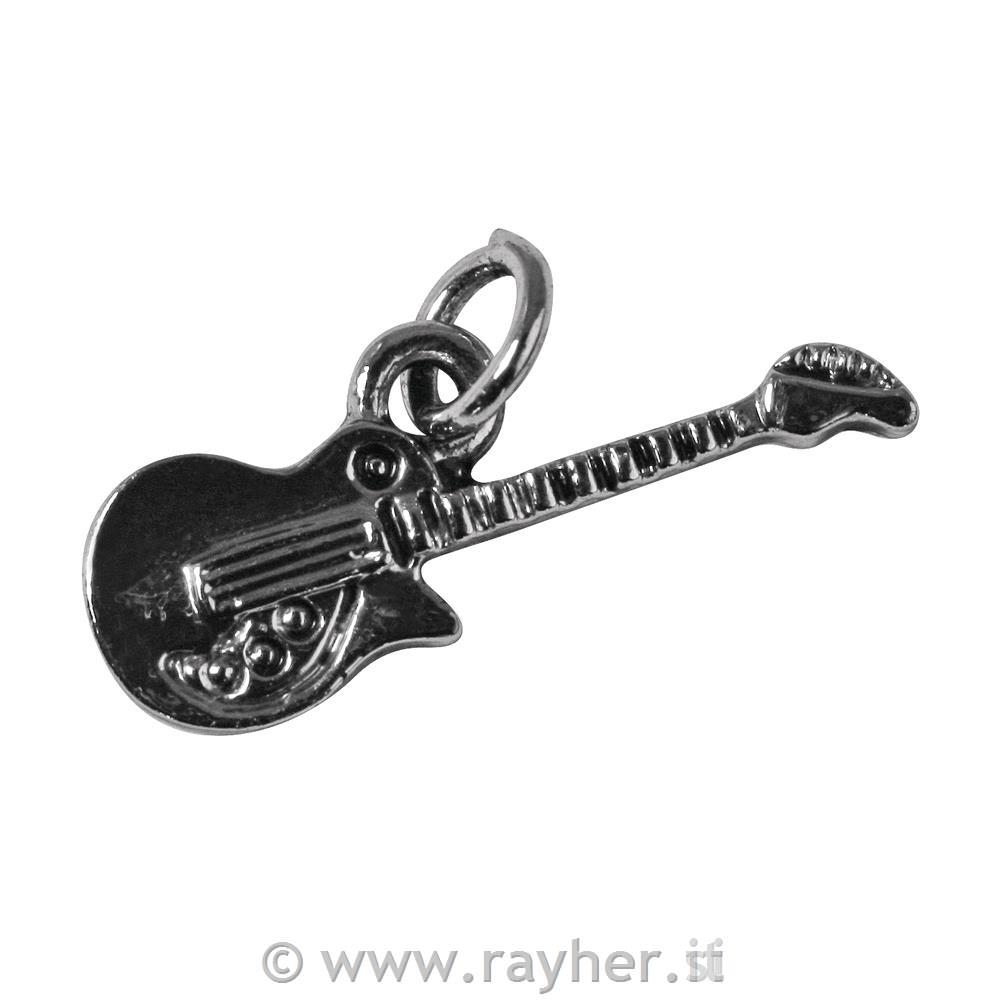 Ciondolo metallo "ghitarra", 20mm, argento, 20mm, occhiello 2,5mm o, sfuso