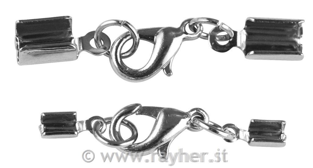 Chiusura bigiott. c.carabina montato, argento, p. 2mm Nastro, bus.blis. 2