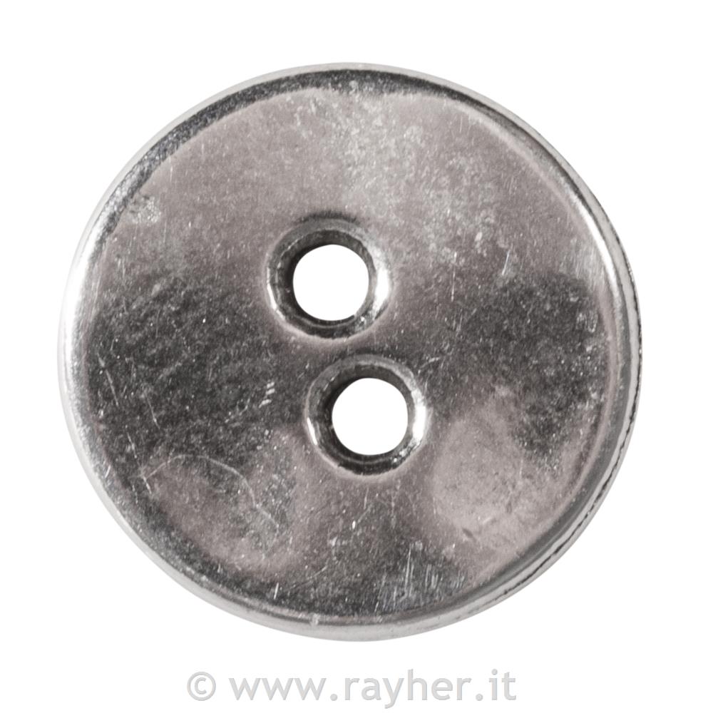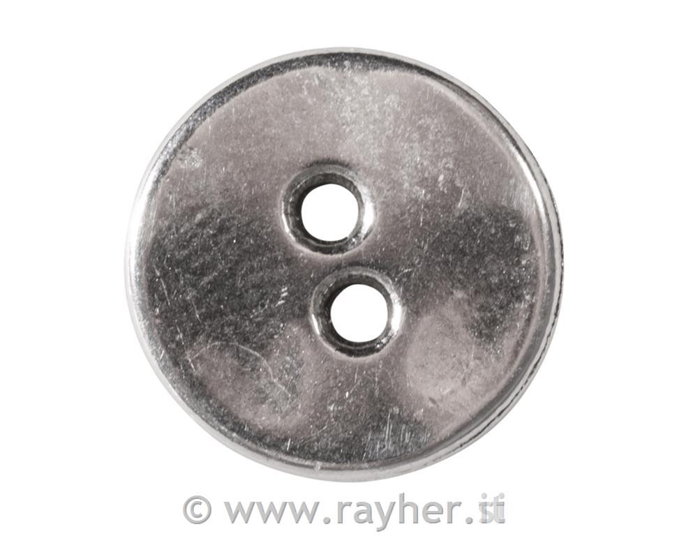 Ornamento met. bottone, 1,4cm o, argento, fori 1,5mm o, bus.blis. 1pz