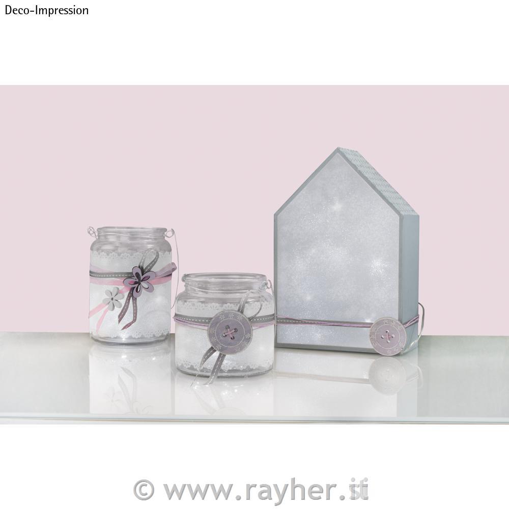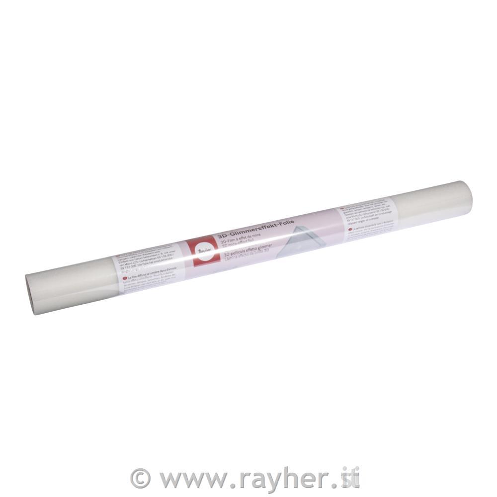 Prosojna, neprosojna (rahlo motna) 3D-folija iz PVC. Ni samolepilno. Folija ima zaradi proizvodnega postopka vzdolžne in prečne rešetke. Za oblikovanje kozarcev, svetilk, oken itd. Folija z učinkom 3D bleščic ima številne možnosti uporabe. Preprosto osvetlite od zadaj. V velike kozarce na primer postavite svetlobno verigo Micro LED (št.artikla 69136000/69137000), ki deluje na baterije, v majhne kozarce pa je za učinek bleščanja dovolj čajna luč. Tridimenzionalne lesene hišice s folijo s 3D bleščečim učinkom na sprednji strani in svetlobno verigo LED, ki je vstavljena vanje, ustvarjajo atmosfersko svetlobo.