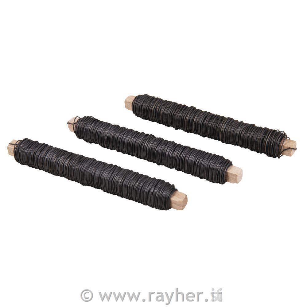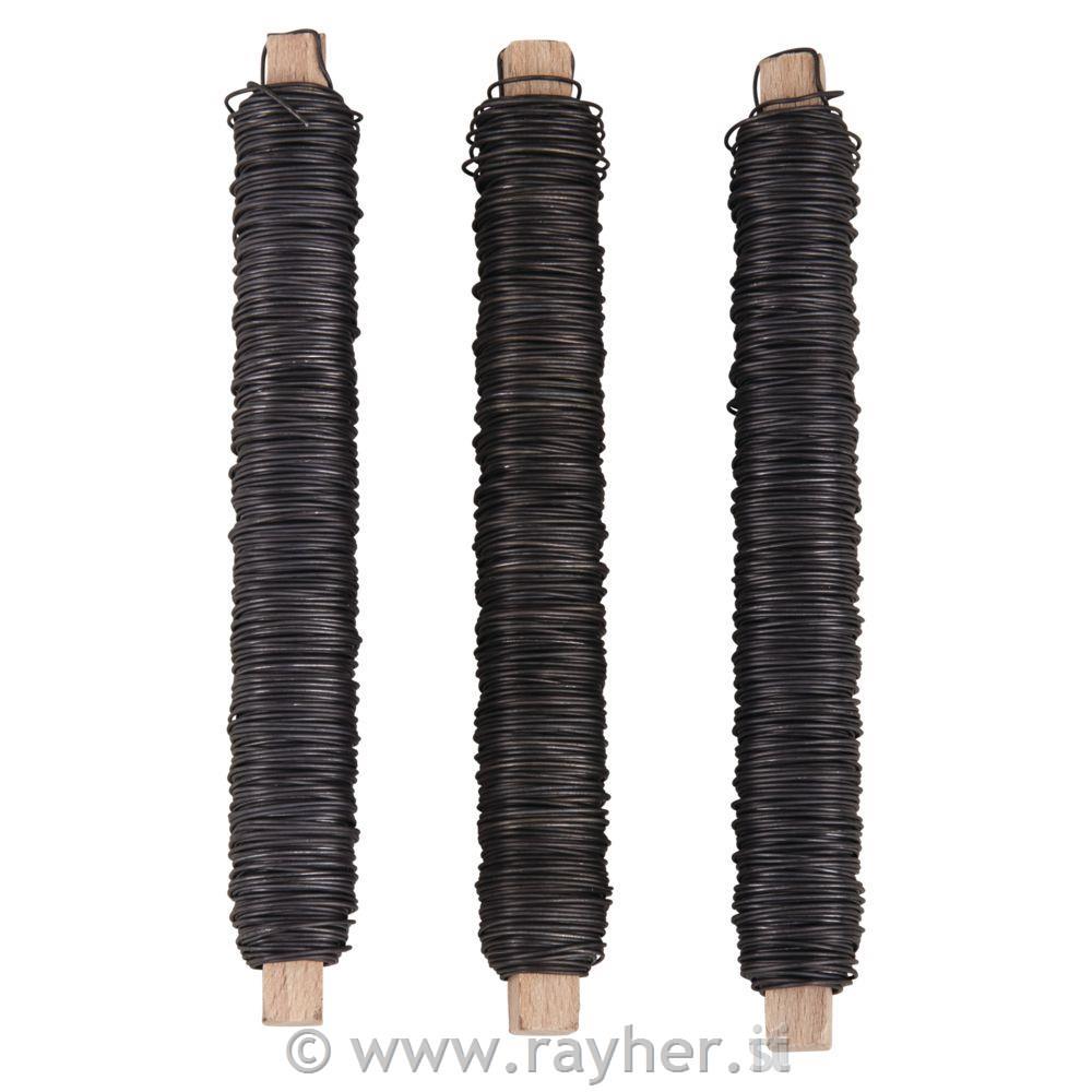 Cvetličarska žica na lesenem kolutu, o 0,65 mm, vrečka 3 kosi po 100 g, material: žica iz mehkega kaljenega železa.