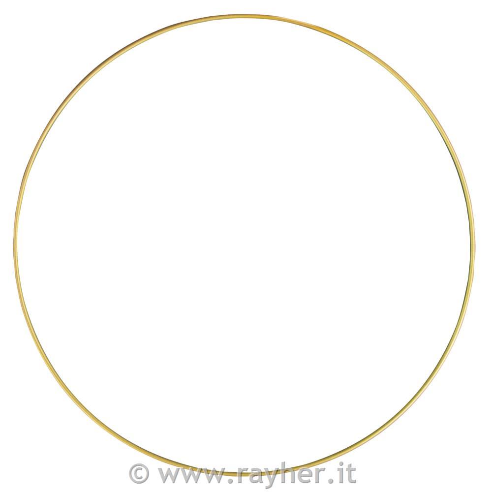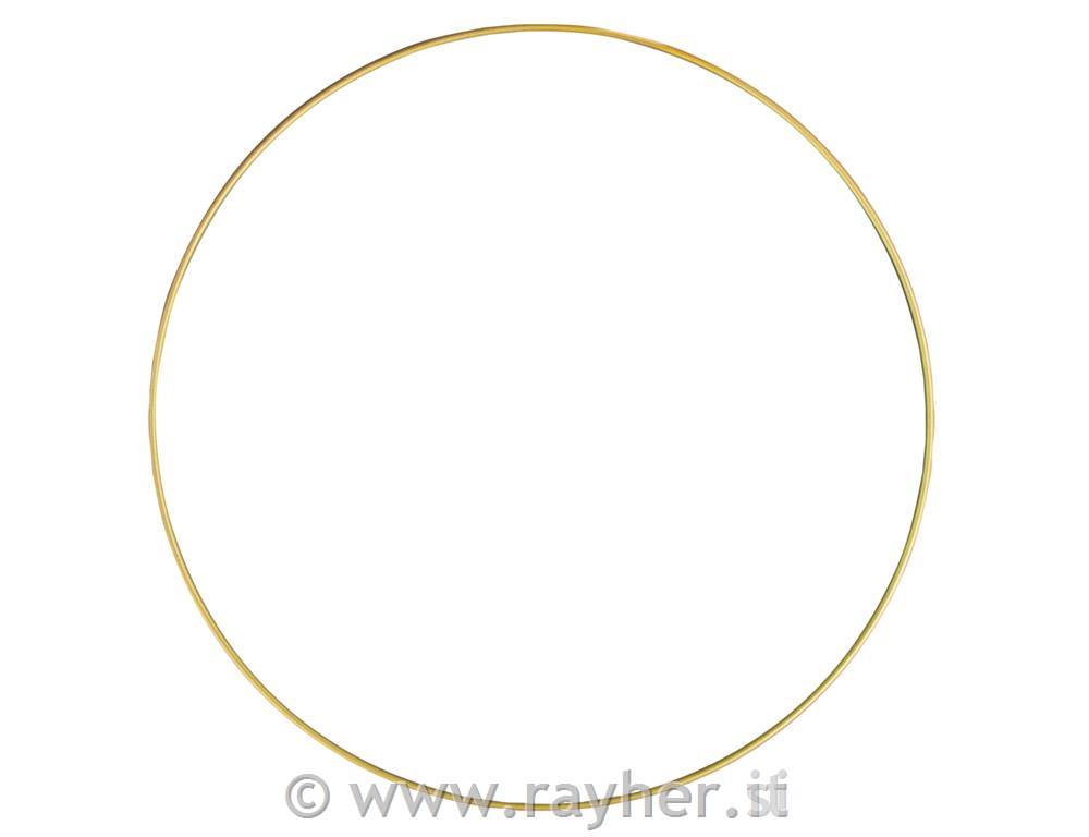 Zlat prevlečen kovinski obroč premera 30cm, izdelan iz železne žice, debelina žice približno 3.5 mm.