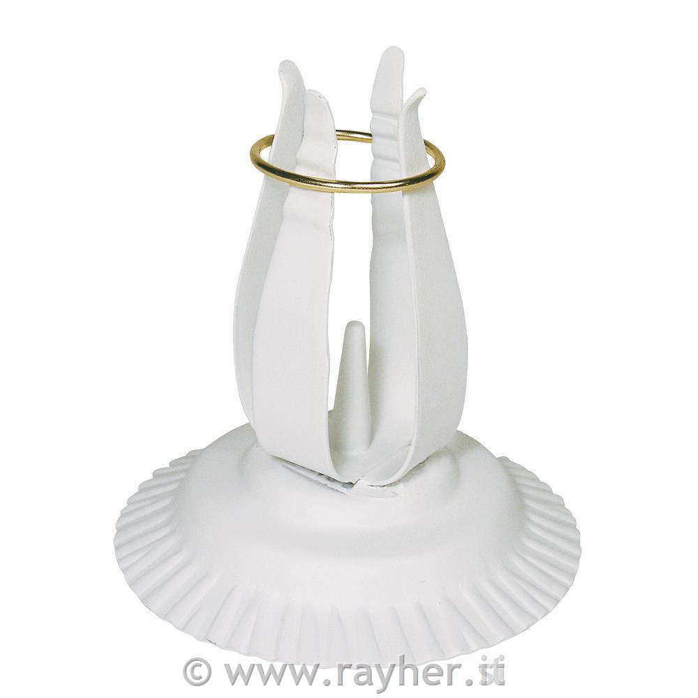 Svečnik za sveče za krst/obhajilo, bel, kovinski, 11 cm o, v