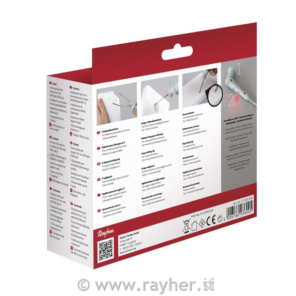 rayher.it Hobi program Stiropor, plastika, vata Ostali pripomočki Termorezalnik za stiropor, 3 v 1, 3 različne konice, set Aktualna cena:27,99 € Šifra artikla:27003000 Blagovna znamka:Rayher Zaloga: na zalogi Dodaj v košarico kos