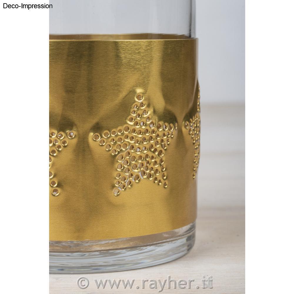 Za svetilke izrežite trak želene višine in dolžine, ki ustreza obsegu vijačnega pokrovčka plus 1 cm za lepljenje. Zdaj na folijo položite želeni vzorec in ga s pisalom pritisnite na folijo. Za vzorec z luknjicami želeni vzorec s sprednje strani z žebljem prebodite v folijo in pripravljen trak z večnamenskim lepilom 3338300 prilepite okoli pokrova kozarca. Premažite obe površini lepila in ju stisnite skupaj, ko sta suhi na otip (približno 10 minut). Nanjo pritrdite žico in dobili ste svetilko.