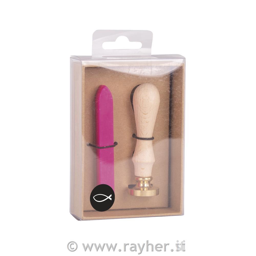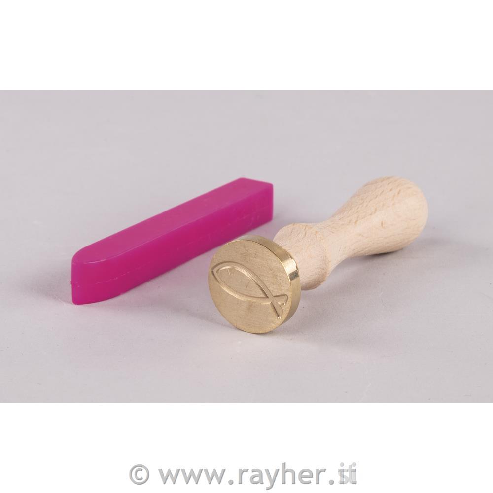 • Seal set Fish, 2.5cm opink1 stamp, 1 wax approx.12g, tab-box 1Set