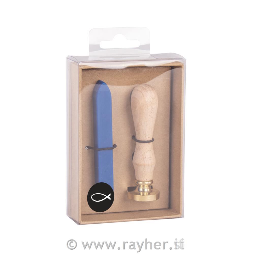 - 1 pečatni žig o 2,5 cm, motiv ribe, z lesenim ročajem