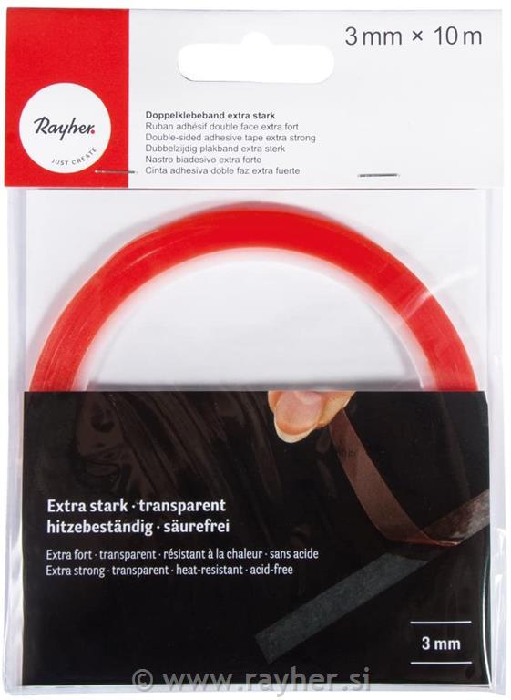 Obojestranski lepilni trak, extra strong, 3mm, prosojen 10m