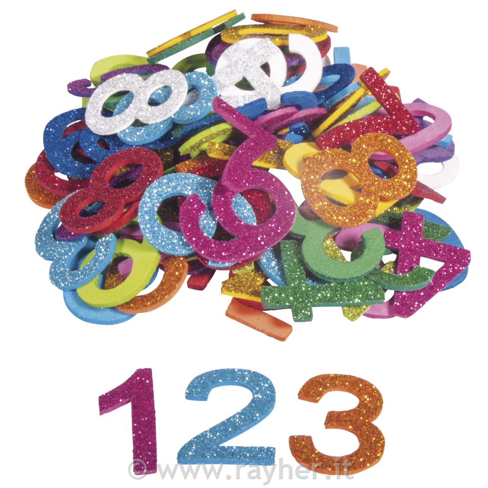 • Sponge rubber Numbers Glitter, 3cm, self-adhesive, tab-bag 100pcs