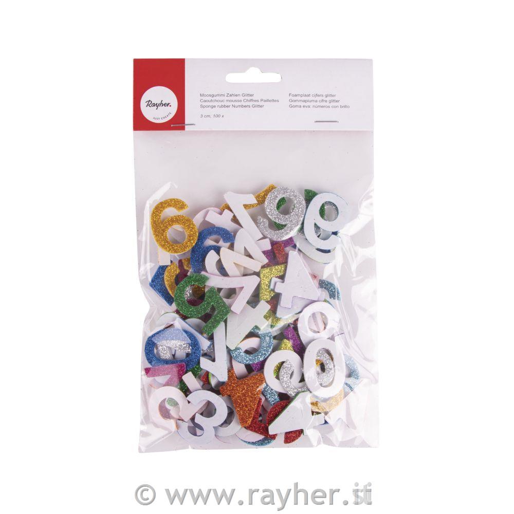 Sponge rubber Numbers Glitter, 3cm, self-adhesive, tab-bag 100pcs