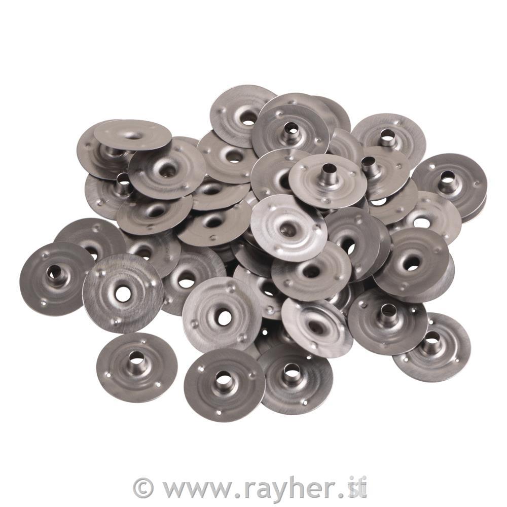 Kovinske ploščice za stenj imajo premer 15 mm. V eni vrečki je 50 kosov.