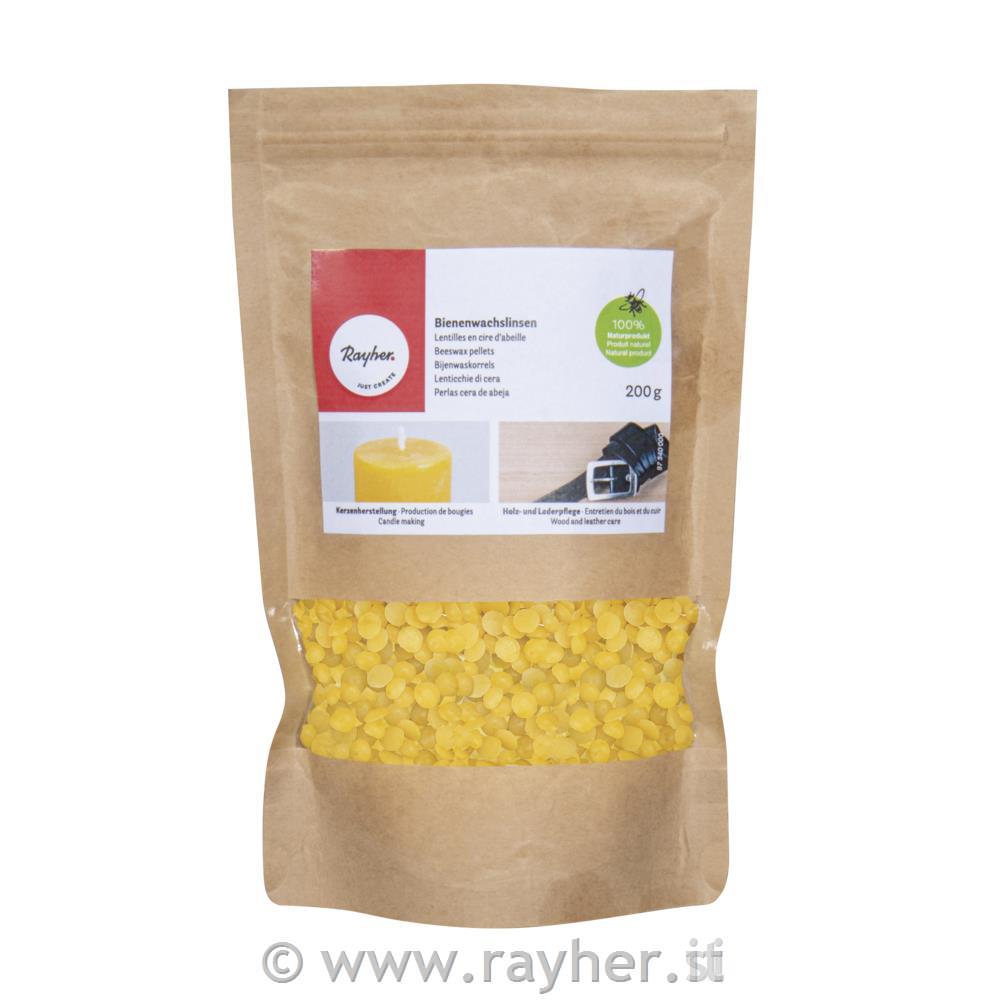 100% cera d'api, da cui puoi fare candele o usarla per fare decorazioni. La cera viene sciolta a bagnomaria a 54°C. Versare la cera sciolta in uno stampo per candele pre-preparato (ricordarsi dello stoppino).