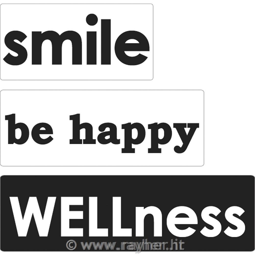 Labels "smile", "be happy", "WELLness",30x15mm, 40x15mm, 50x15mm, 3pc