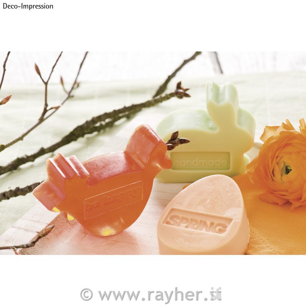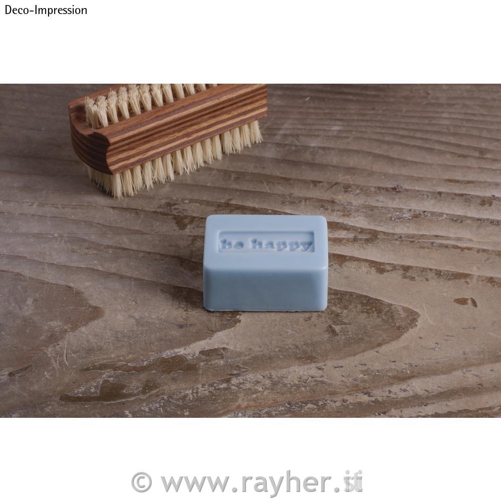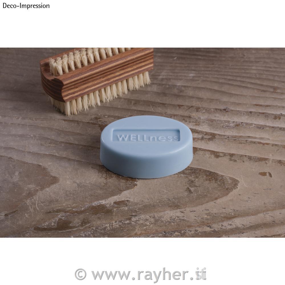 Odtis za kalup položite na dno kalupa za vlivanje mil in čezenj vlijete milo. Ko vzamete milo iz kalupa, odstranite še odtis, ki na milu pusti vtisnjen motiv.