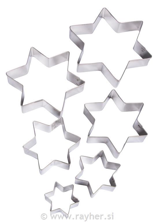 Zvezde kovinski rezalniki ( od 3 do 9 cm) v 6 velikostih pričarajo prefinjene dekorativne dodatke.