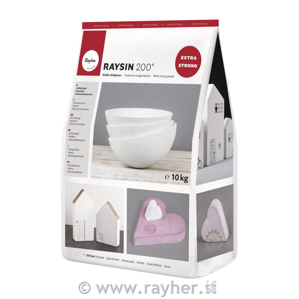 Prah za vljivanje v kalupe Raysin 200 navdušuje z visoko trdnostjo 200 N/mm2 in je še posebej primerna za večje predmete, kot so figurice, okrasne ploščice, sklede itd. Raysin je primeren za kalupe iz plastike (PET + LDPE), lateksa, gume in silikona.