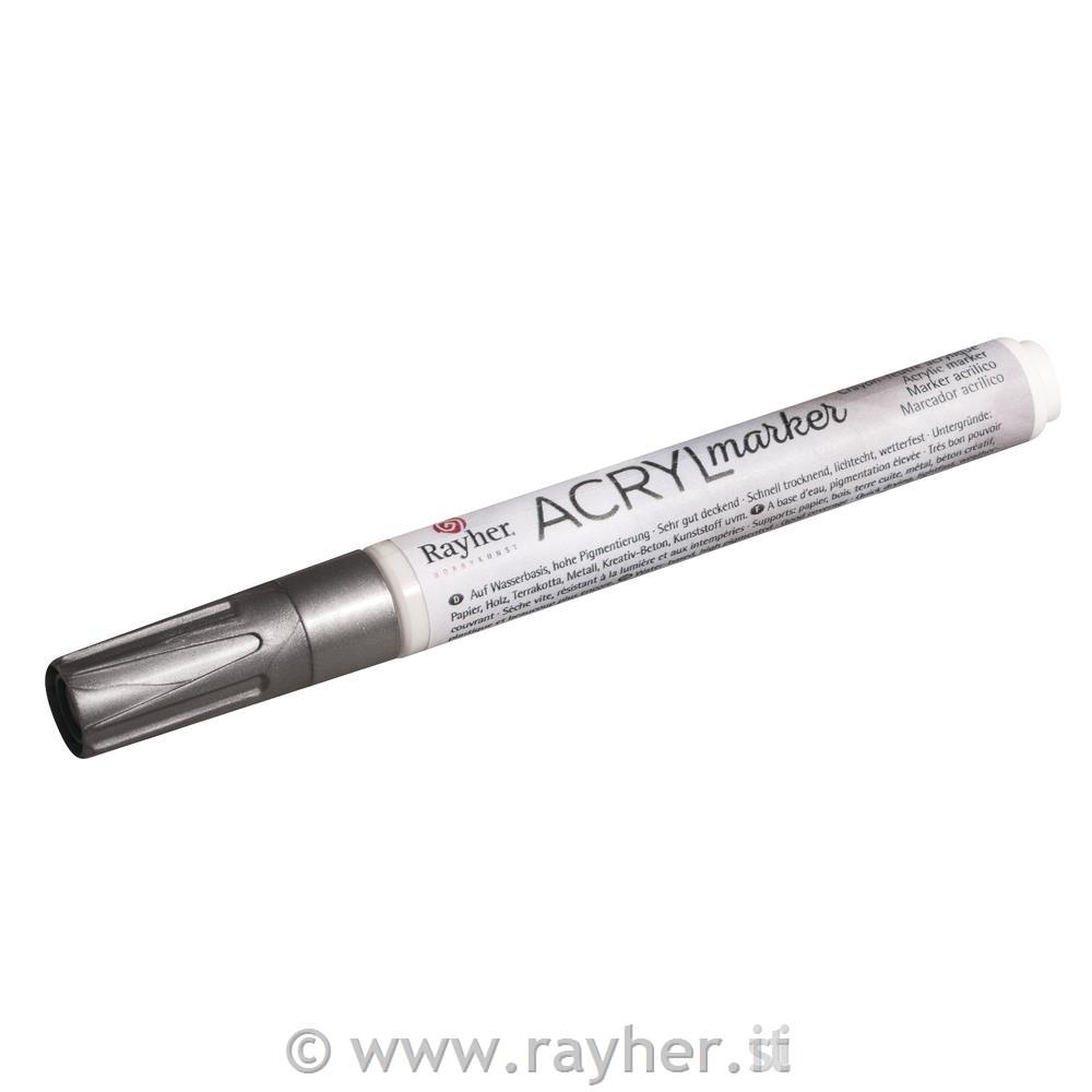 Marker acrilico, argento, punta tonda 2-4mm, con valvola